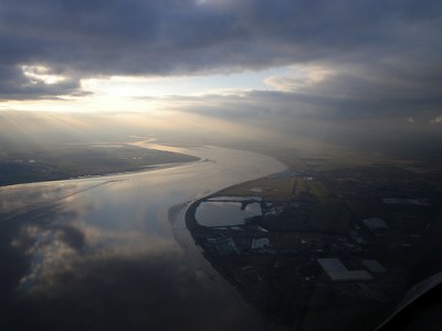 He could see where the river narrowed and made a natural crossing–the Romans called it Petuaria–where fingerling sandbars stretched out from the banks as he continued his descent over tidal swales, drainage canals and dry sedge. The landing field came up abruptly at an angle after the heiroglyphic outlines of Welton Waters, an abandoned clay pit where fragmented pools of water glistened with oil and puffy, iridescent reflections.