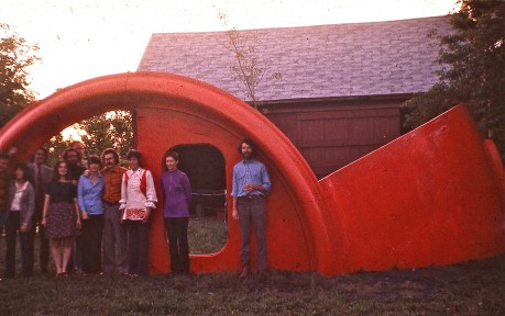 padded with foam rubber and upholstered with a natural-colored Flokati rug allowing just enough room to enfold a single person in soul-searching solitude. “When you get inside, it’s almost like being in your mother’s womb,” said one visitor. Another compared it to a “free-form coffin.”