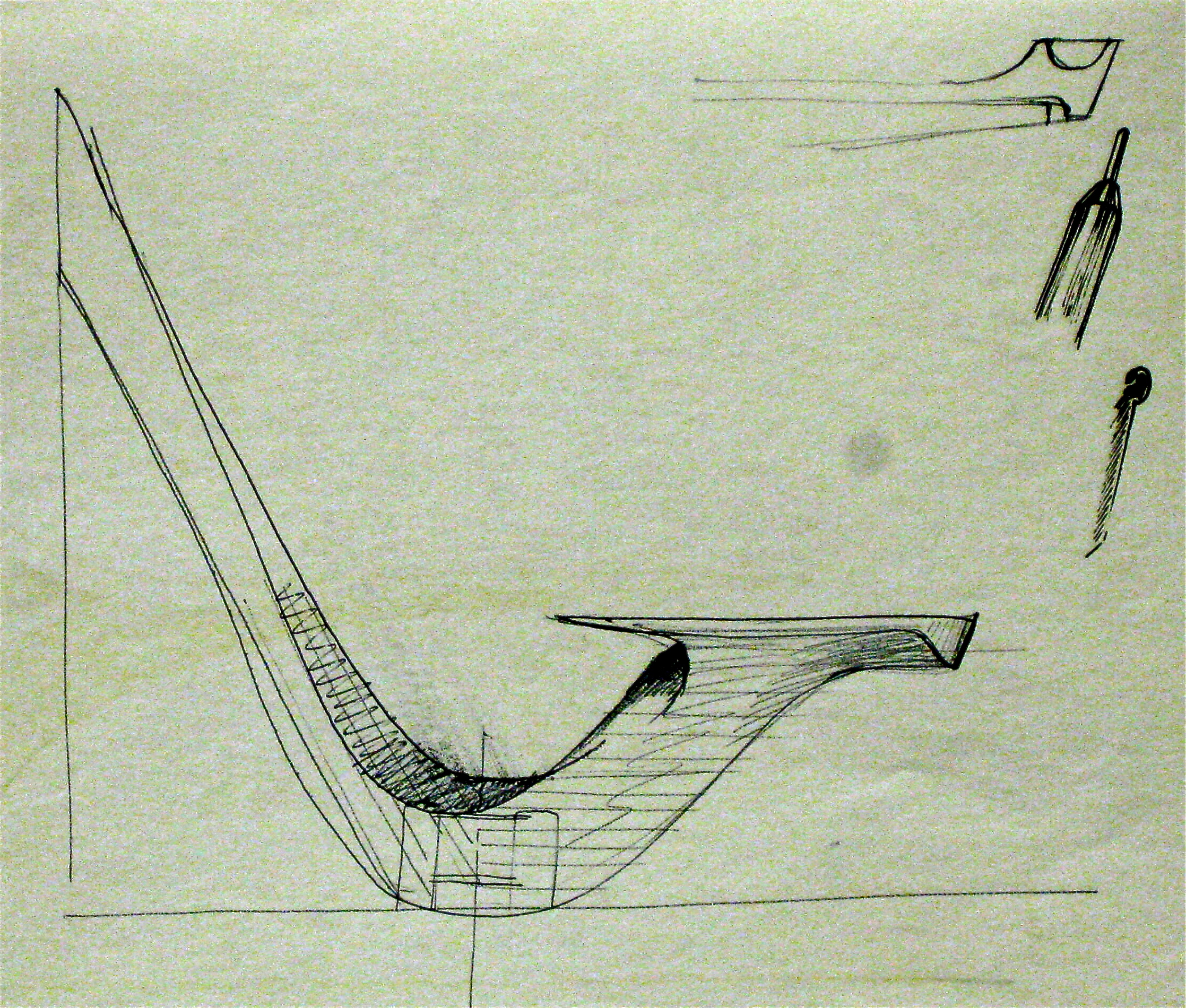 A few days later, heading back to the airport through stubbled fields and subdivisions on Scottsville Road (Rt. 383), I remember the sketch I’d seen in one of Castle’s notebooks: two wings, reaching up as if unfurling, drawn in 1973 as a newel post to be carved for the Gannett News offices on East Main Street. Castle’s wings are less forbidding with twisted fluting that culminates in a billowing, almost cartoon-like flourish, but there’s a similarity to Ralph Walker’s Wings of Progress and it makes me think how Rochester must have etched it’s way into Castle’s psyche over the years, just as Castle’s changed this city and become a landmark in his own right, certainly as much as Walker’s sullen skyscraper. Even the bourbon-swilling banker sitting next to me on the return flight knew about him.