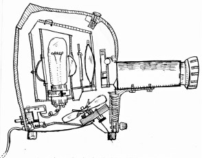 Gradually, I became quite an accomplished operator, better than my father, and he allowed me do run the machine myself, which gave him more freedom to concentrate on his talks. He would give me a nod, meaning that I was supposed to advance the next slide and adjust the lens so that each image came into focus. At one point he bought a special attachment, a kind of multi-slotted magazine that allowed us to load as many as twenty slides at a time and project them without interruption. I became quite obsessed with the machine, the powerful AO-300 slide projector, manufactured in Chelsea, Massachusetts, with its gray, non-chip finish. I read the instruction manual and learned how to clean all the parts with a Q-tip dipped in alcohol. “The Model AO-300 provides the rugged construction, uniform illumination and superior blower-cooled operation for which American Optical projectors are justly famous,” read the manual. I wanted to understand how it worked, so I unscrewed the side panel and drew a cut-away rendering of the inner workings–all the wires, switches, mirrors, lenses–as accurately as I could manage.